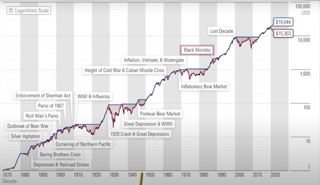 During the past 150 years, there have been many Market cycles that have occurred, a lot of Bull and Bear markets that we can analyze and draw parallels to our current situation. The most well-known market crash in history was the 1929 crash and Great Depression. Others include Black Monday, the Lost Decade, the 2008 financial crisis, inflation in the Vietnamese War, the post-war bear market after World War II, etc.